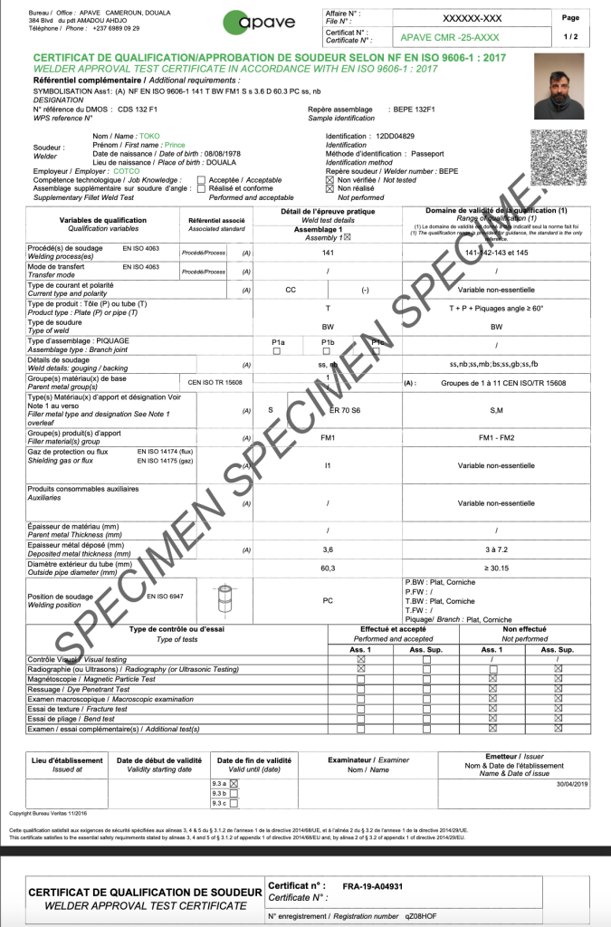 Tous nos soudeurs sont évalués et qualifiés par l’APAVE :